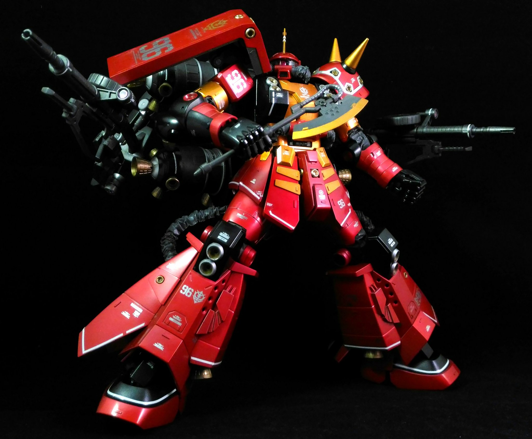 永遠の蒼 Mgサイコ ザクver Kaキャンディ塗装版完成しました 赤とオレンジはキャンディで黒はグロス塗装グレー系はmr メタルカラー Ver Kaキャンペーンのメタリックデカールを2セット使用した豪華仕様 ガンプラの画像貼るとrtされると聞いて